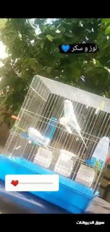 طيور حب بادجي ذات لون جميل مع قفص بحالة ممتازة